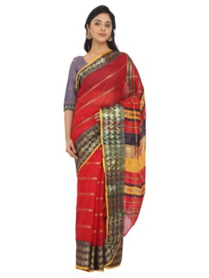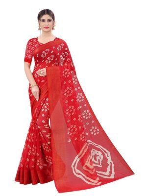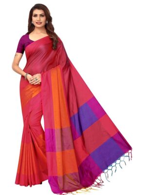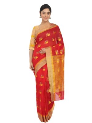 Generic Women’s Cotton Silk Saree With Blouse (Red, 5-6 Mtrs)