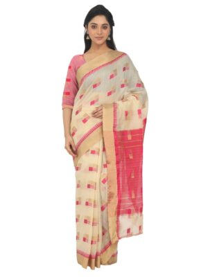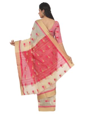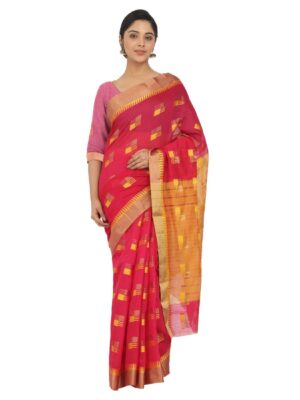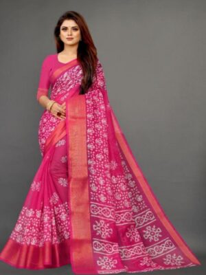 Generic Women’s Cotton Silk Saree With Blouse (Pink, 5-6mtrs)