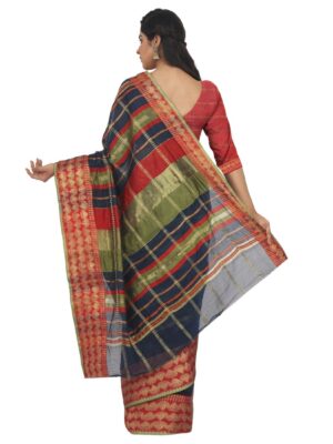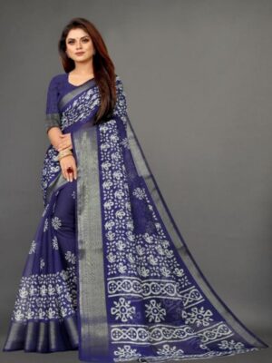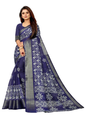 Generic Women’s Cotton Silk Saree With Blouse (Navy Blue, 5-6 Mtrs)