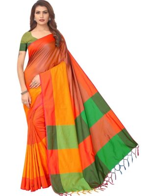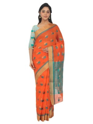 Generic Women’s Cotton Silk Saree With Blouse (Orange, 5-6 Mtrs)