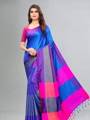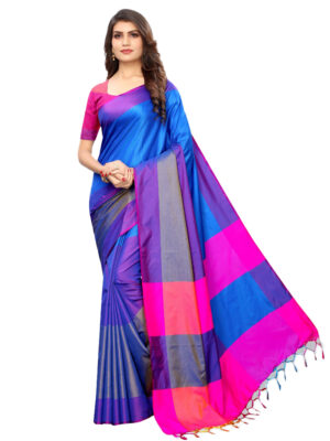 Generic Women’s Cotton Silk Saree With Blouse (Royal Blue, 5-6mtrs)