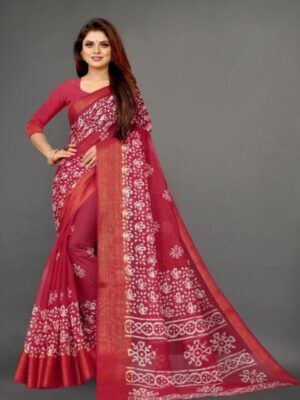 Generic Women’s Cotton Silk Saree With Blouse (Red, 5-6mtrs)