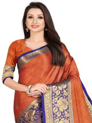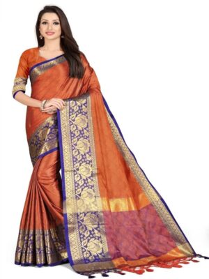 Generic Women’s Cotton Silk,Jacquard,Poly Silk Saree (Orange, 5-6 Mtrs)