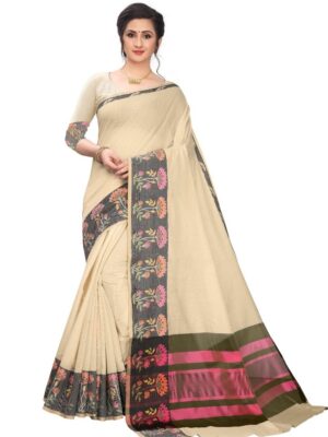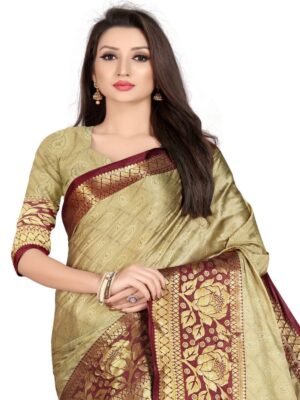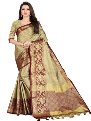 Generic Women’s Cotton Silk,Jacquard,Poly Silk Saree (Beige, 5-6 Mtrs)