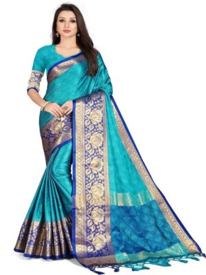 Generic Women’s Cotton Silk,Jacquard,Poly Silk Saree (Blue, 5-6 Mtrs)