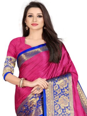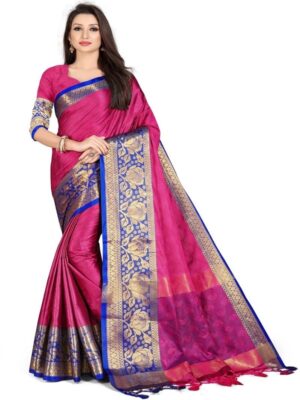 Generic Women’s Cotton Silk,Jacquard,Poly Silk Saree (Pink, 5-6 Mtrs)