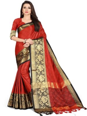 Generic Women’s Cotton Silk,Jacquard,Poly Silk Saree (Red, 5-6 Mtrs)