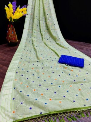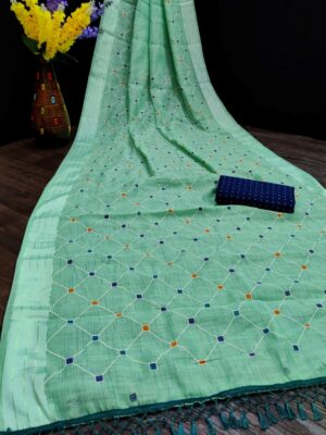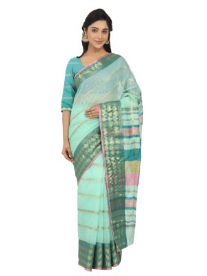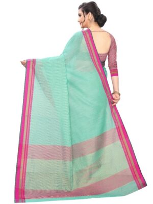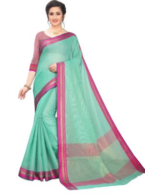 Generic Women’s Cotton Silk Saree With Blouse (Turquoise green, 5-6 Mtrs)