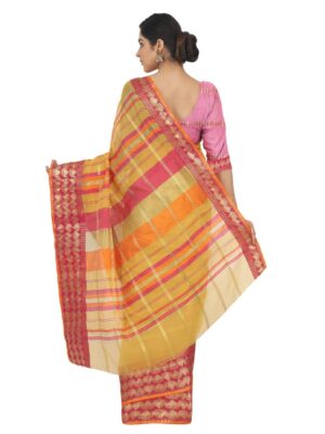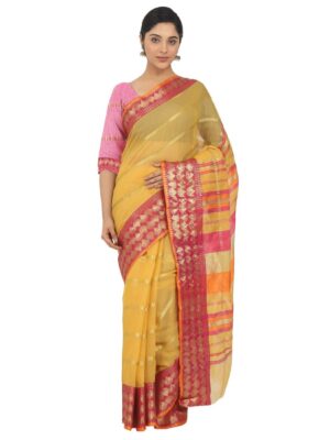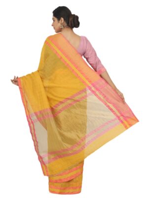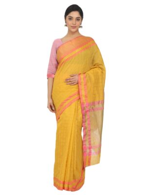 Generic Women’s Cotton Silk Saree With Blouse (Yellow, 5-6 Mtrs)
