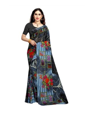 Generic Women’s Georgette Saree(Grey,5-6 Mtrs)