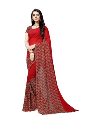 Generic Women’s Georgette Saree(Red,5-6 Mtrs)