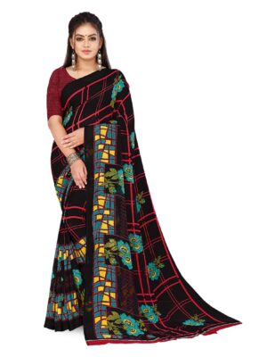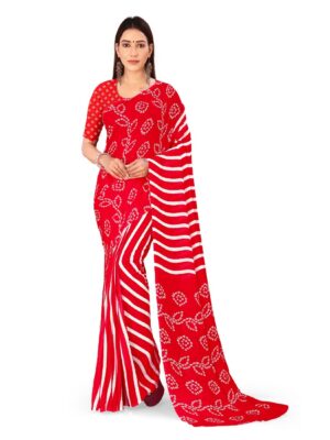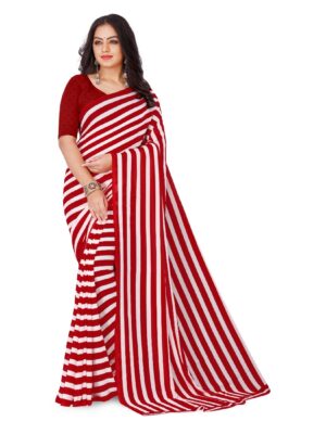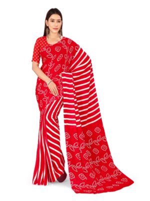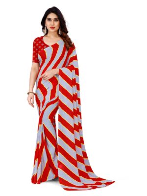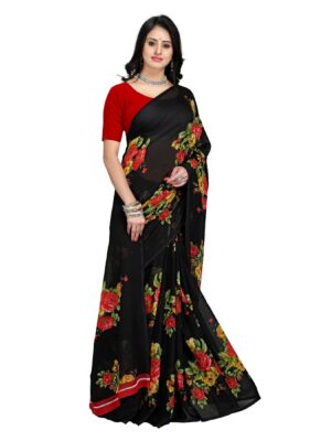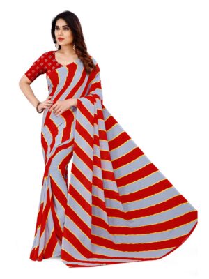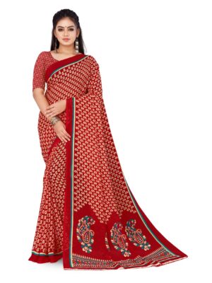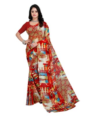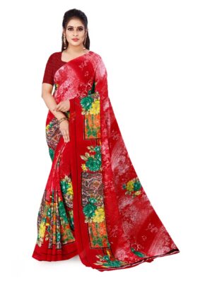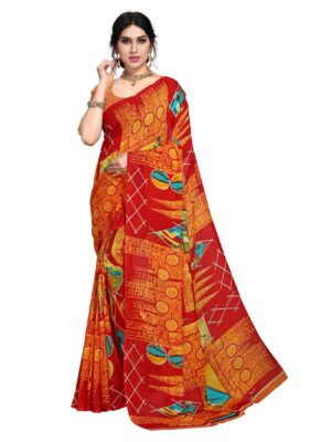 Generic Women’s Faux Georgette Saree With Blouse (Red , 5-6Mtrs)