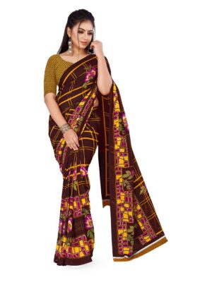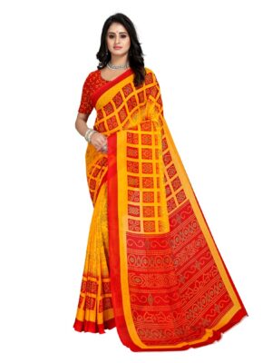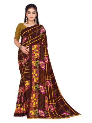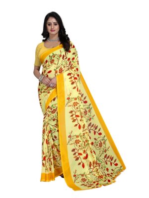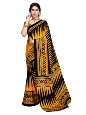 Generic Women’s Faux Georgette Saree With Blouse (Yellow, 5-6Mtrs)