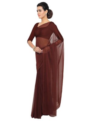 Generic Women’s Georgette Plain Saree With Blouse (Coffee, 5-6 Mtrs)