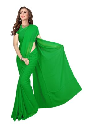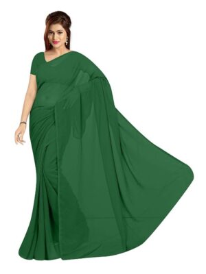 Generic Women’s Georgette Plain Saree With Blouse (Dark Green, 5-6 Mtrs)
