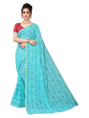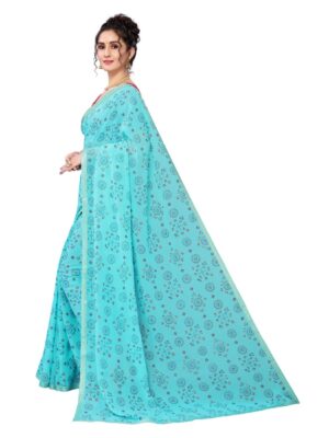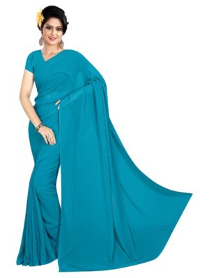 Generic Women’s Georgette Plain Saree With Blouse (Dark Firozi, 5-6 Mtrs)