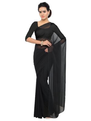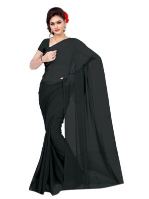 Generic Women’s Georgette Plain Saree With Blouse (Black, 5-6 Mtrs)