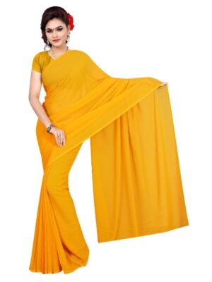 Generic Women’s Georgette Plain Saree With Blouse (Gold, 5-6 Mtrs)