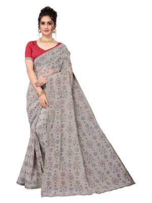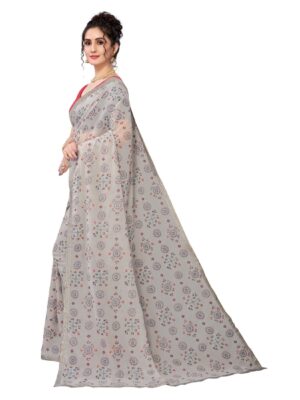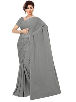 Generic Women’s Georgette Plain Saree With Blouse (Grey, 5-6 Mtrs)
