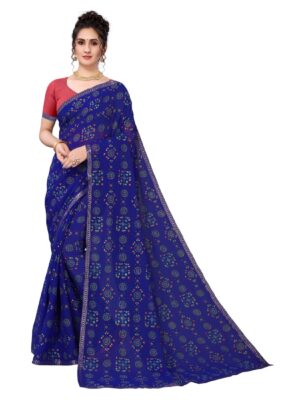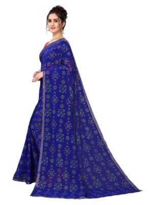 Generic Women’s Georgette Bandhni Foil Printed Sarees (Navy Blue, 5-6 Mtrs)