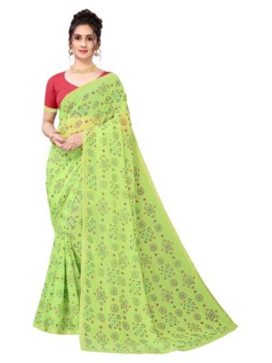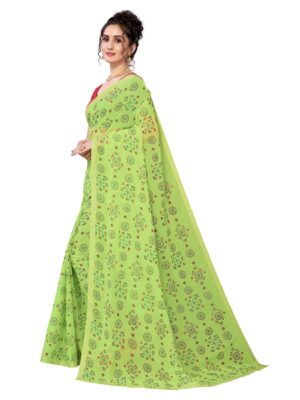 Generic Women’s Georgette Bandhni Foil Printed Sarees (Parrot Green, 5-6 Mtrs)