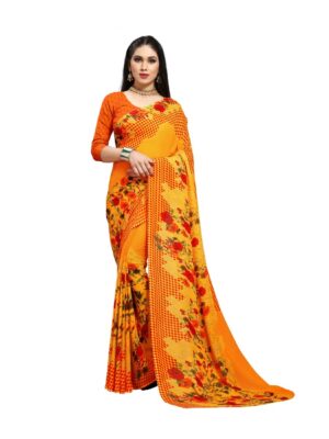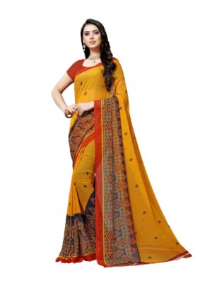 Generic Women’s Georgette Saree(Yellow,5-6 Mtrs)