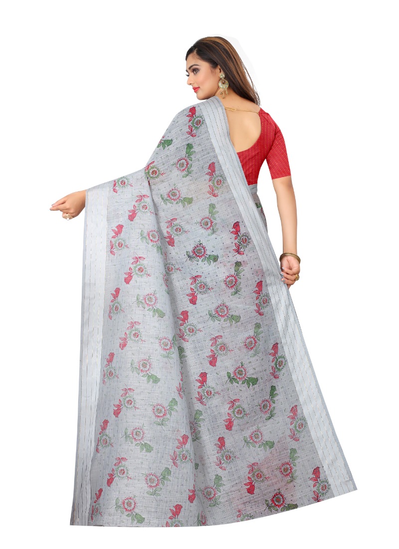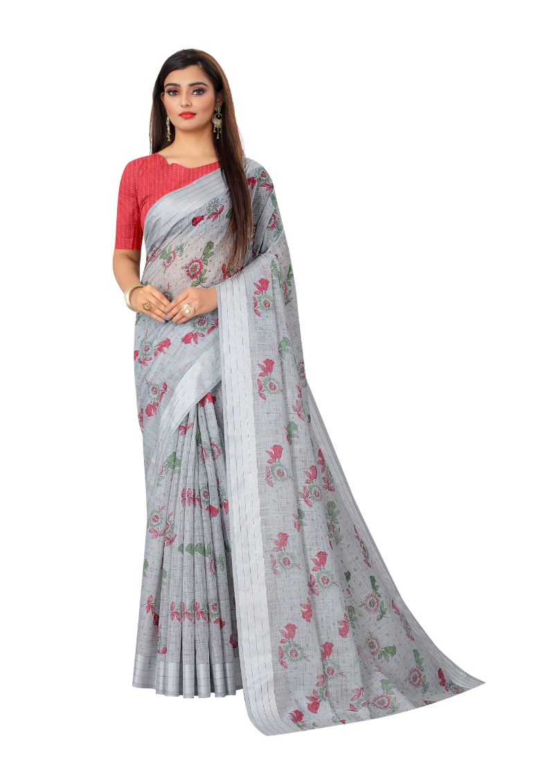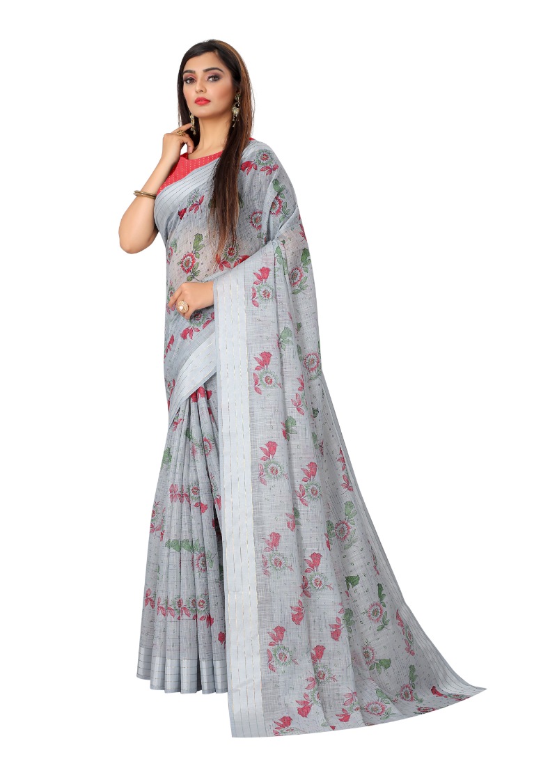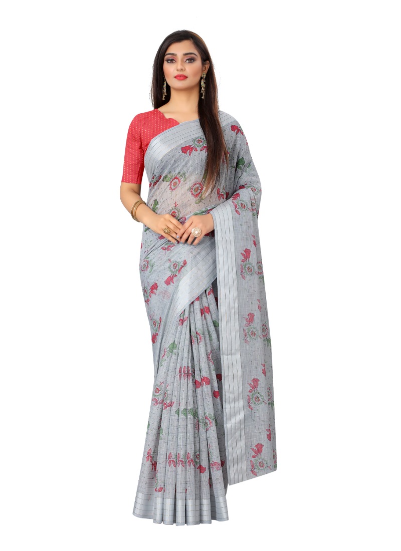 Women’s Cotton Saree (Grey,5-6Mtrs)