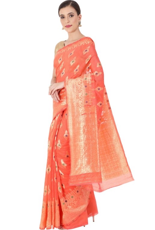 Women’s Cotton Sarees (Orange , 5-6Mtrs)