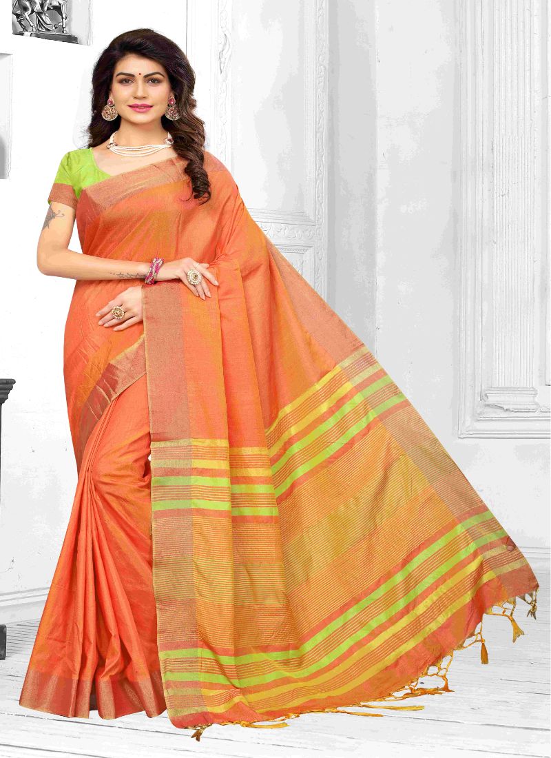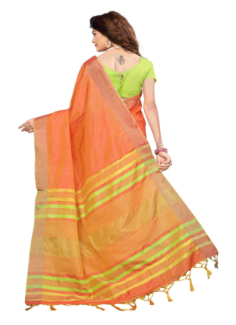 Generic Women’s Cotton Silk Saree (Orange, 5-6 Mtrs)