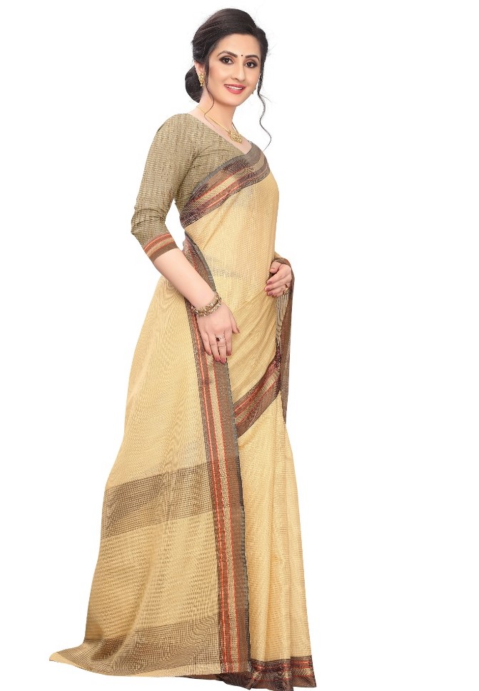 Women’s Cotton Silk Sarees (Sandal , 5-6Mtrs)