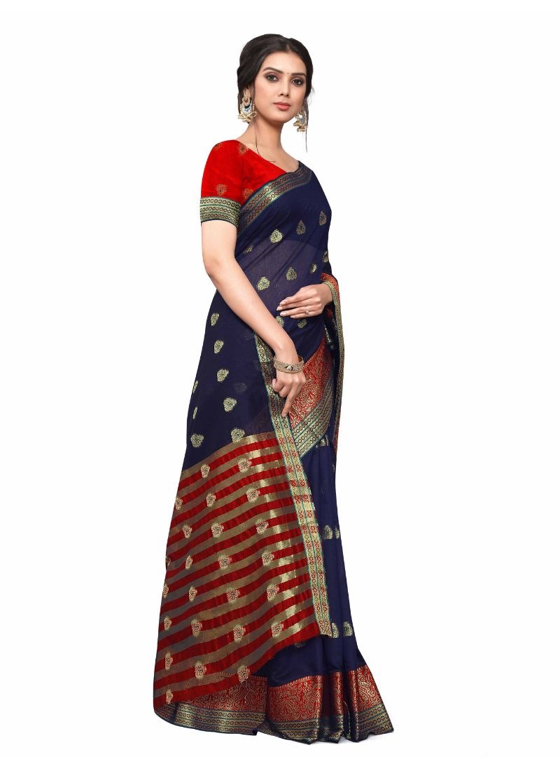 Women’s Cotton_Silk Saree (Navy Blue ,5-6Mtrs)