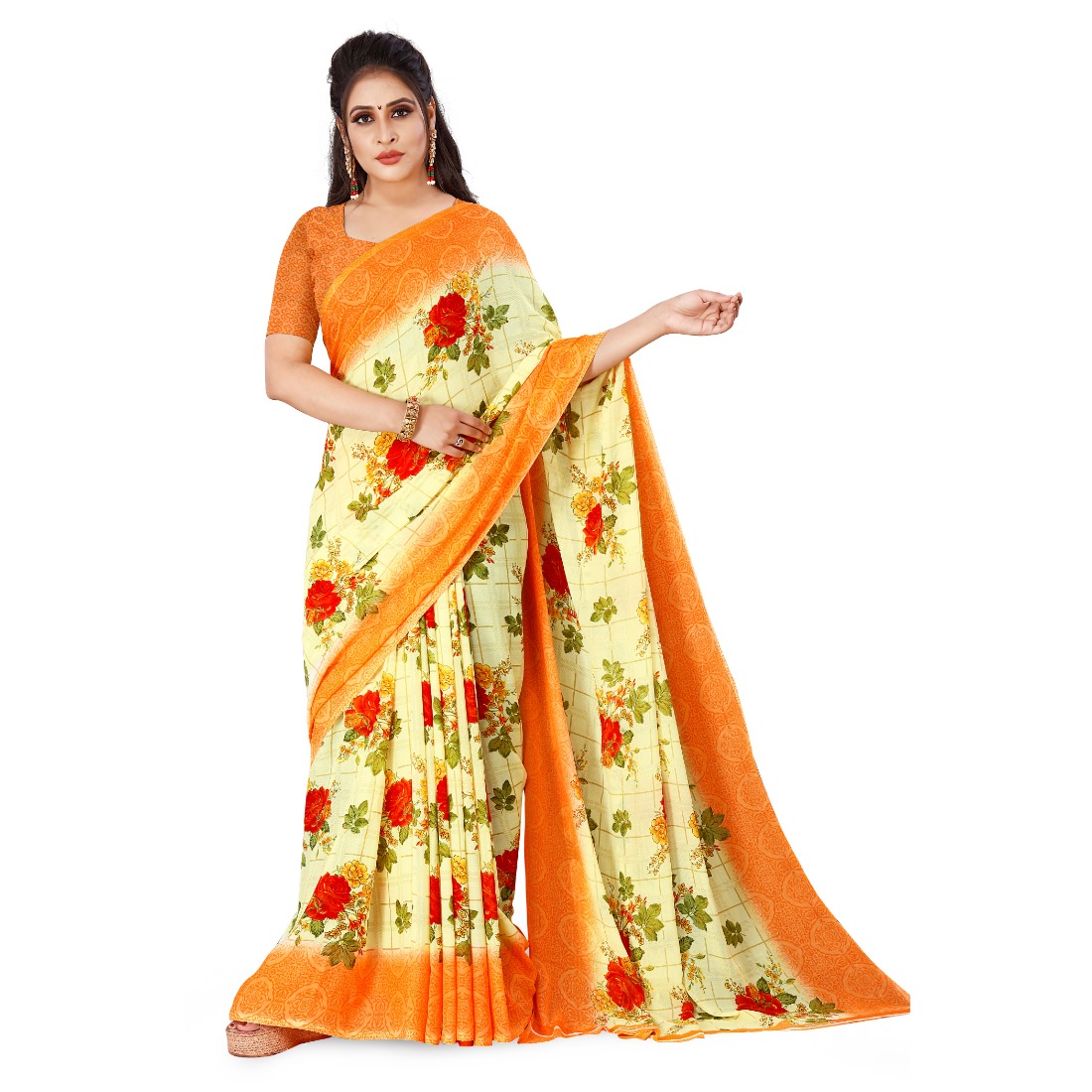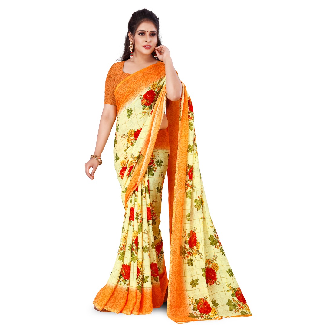 Be the first to review “Generic Women’s Faux Georgette Saree With Blouse (Orange, 5-6Mtrs)” Cancel reply