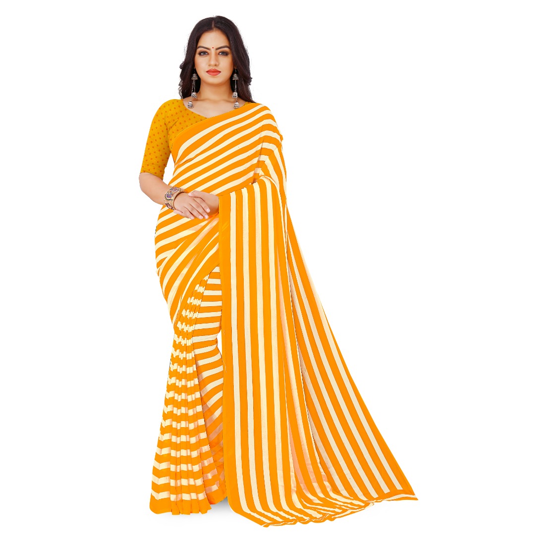 Generic Women’s Faux Georgette Saree With Blouse (Yellow, 5-6Mtrs)