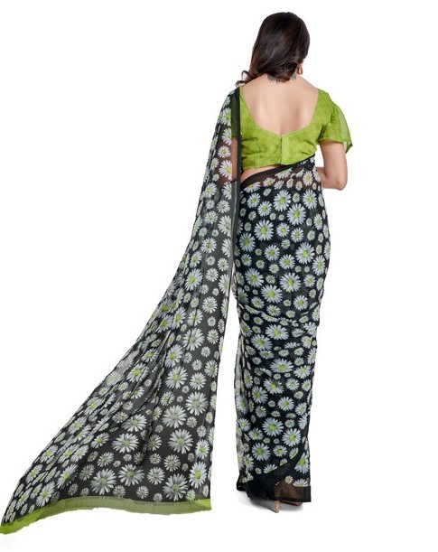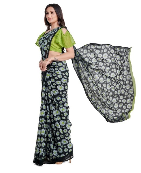 Generic Women’s Georgette Saree With Blouse (Green, 5-6mtrs)