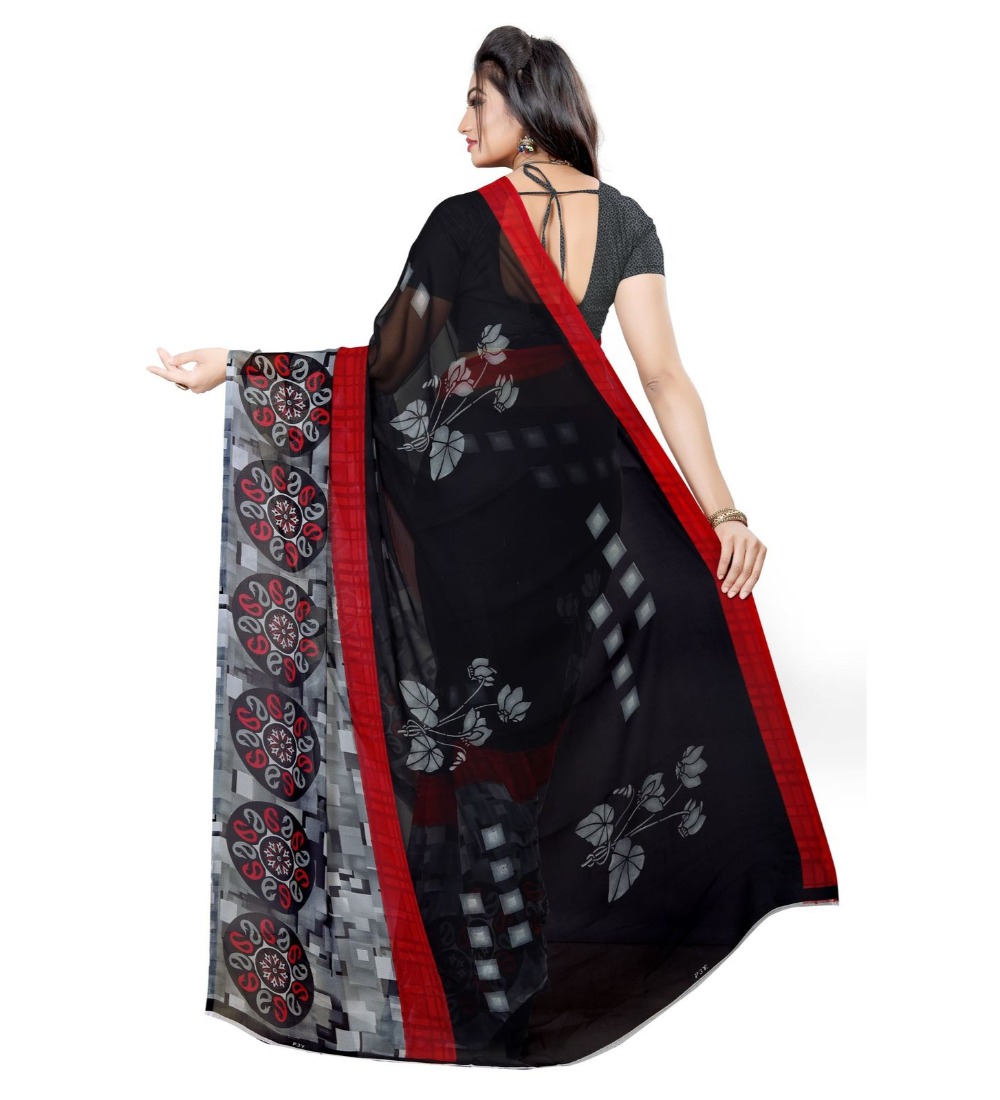 Women’s Georgette Saree(Black,5-6 Mtrs)