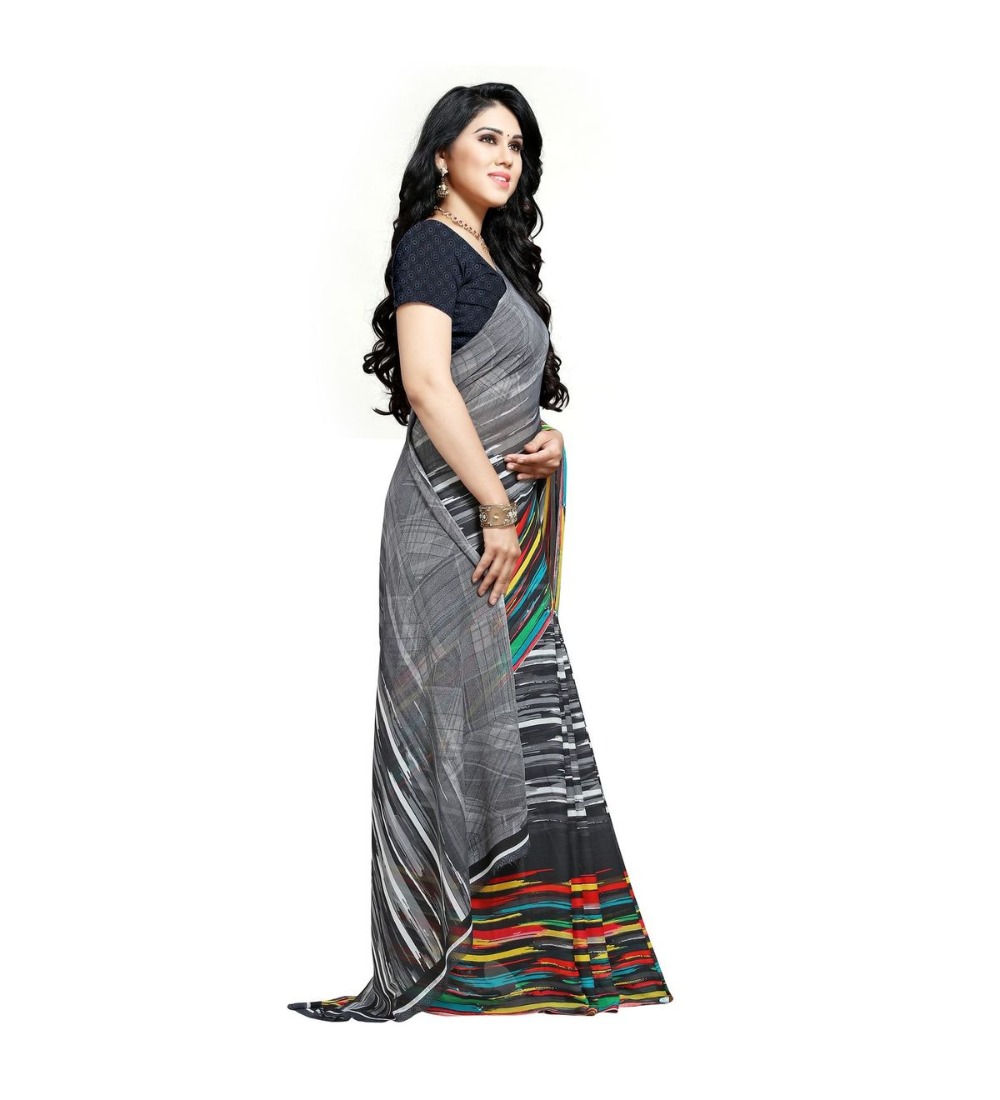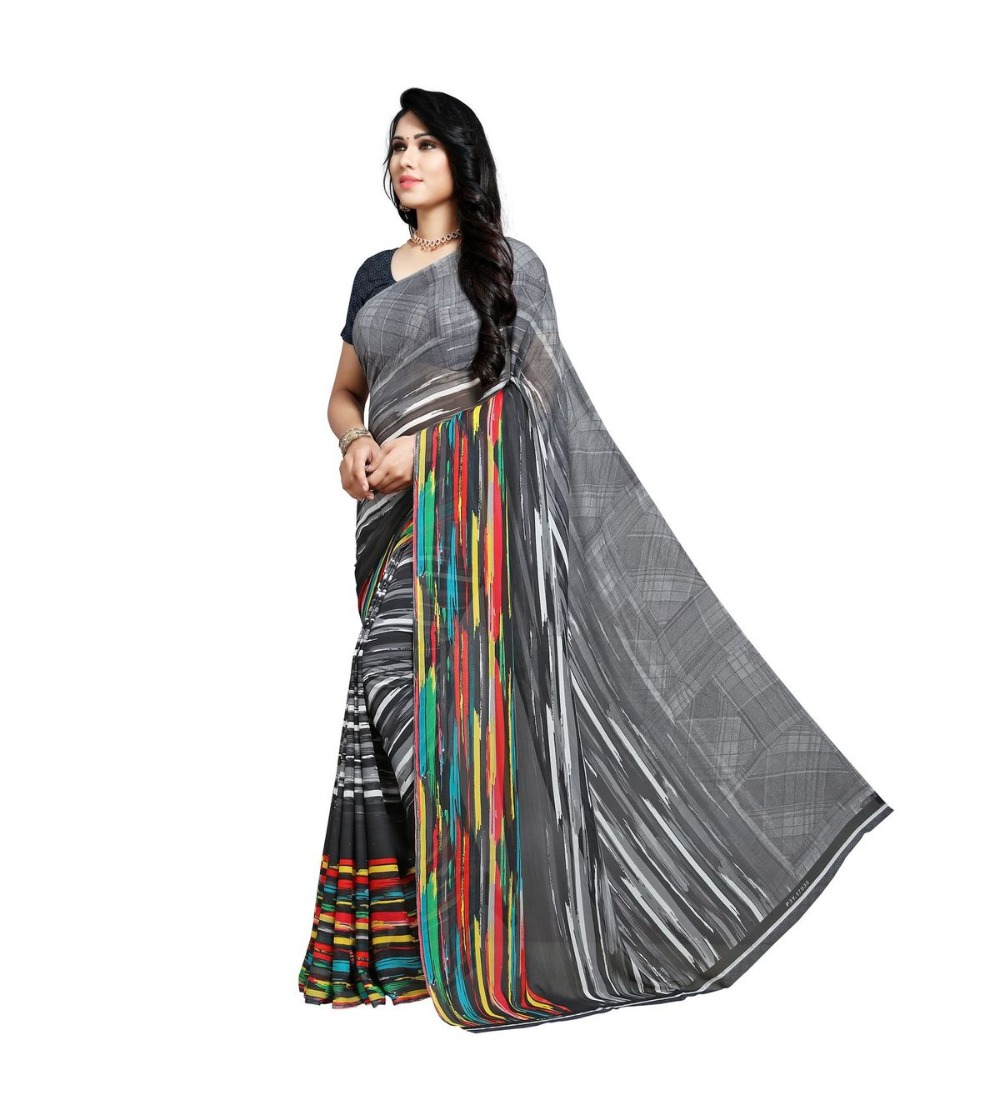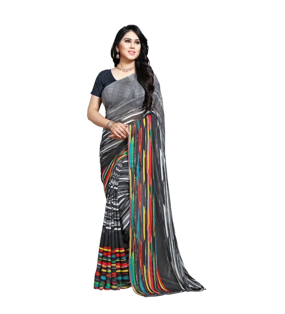 Women’s Georgette Saree(Black,5-6 Mtrs)