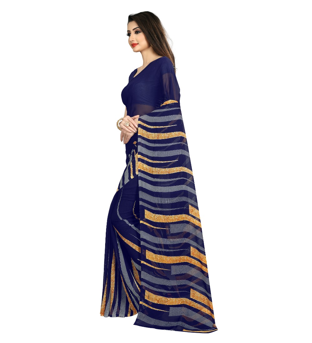 Women’s Georgette Saree(Blue,5-6 Mtrs)