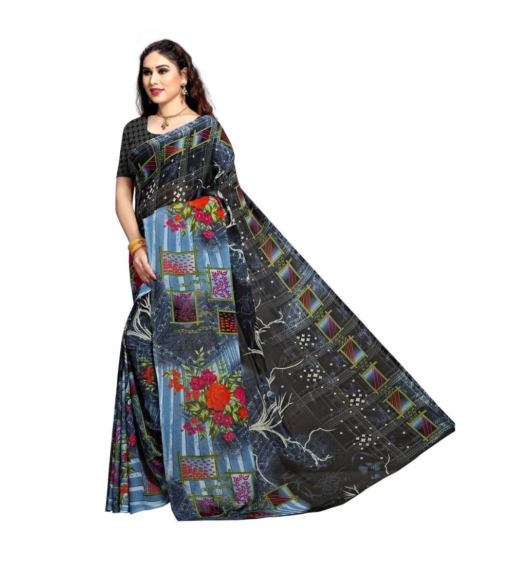 Generic Women’s Georgette Saree(Blue,5-6 Mtrs)