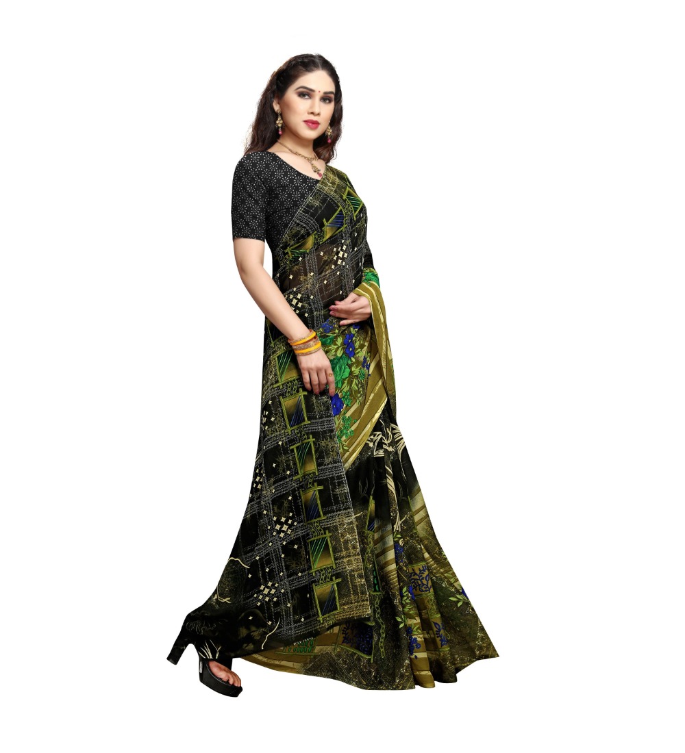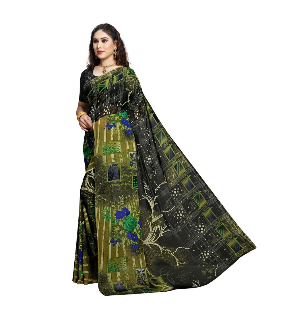 Women’s Georgette Saree(Green,5-6 Mtrs)