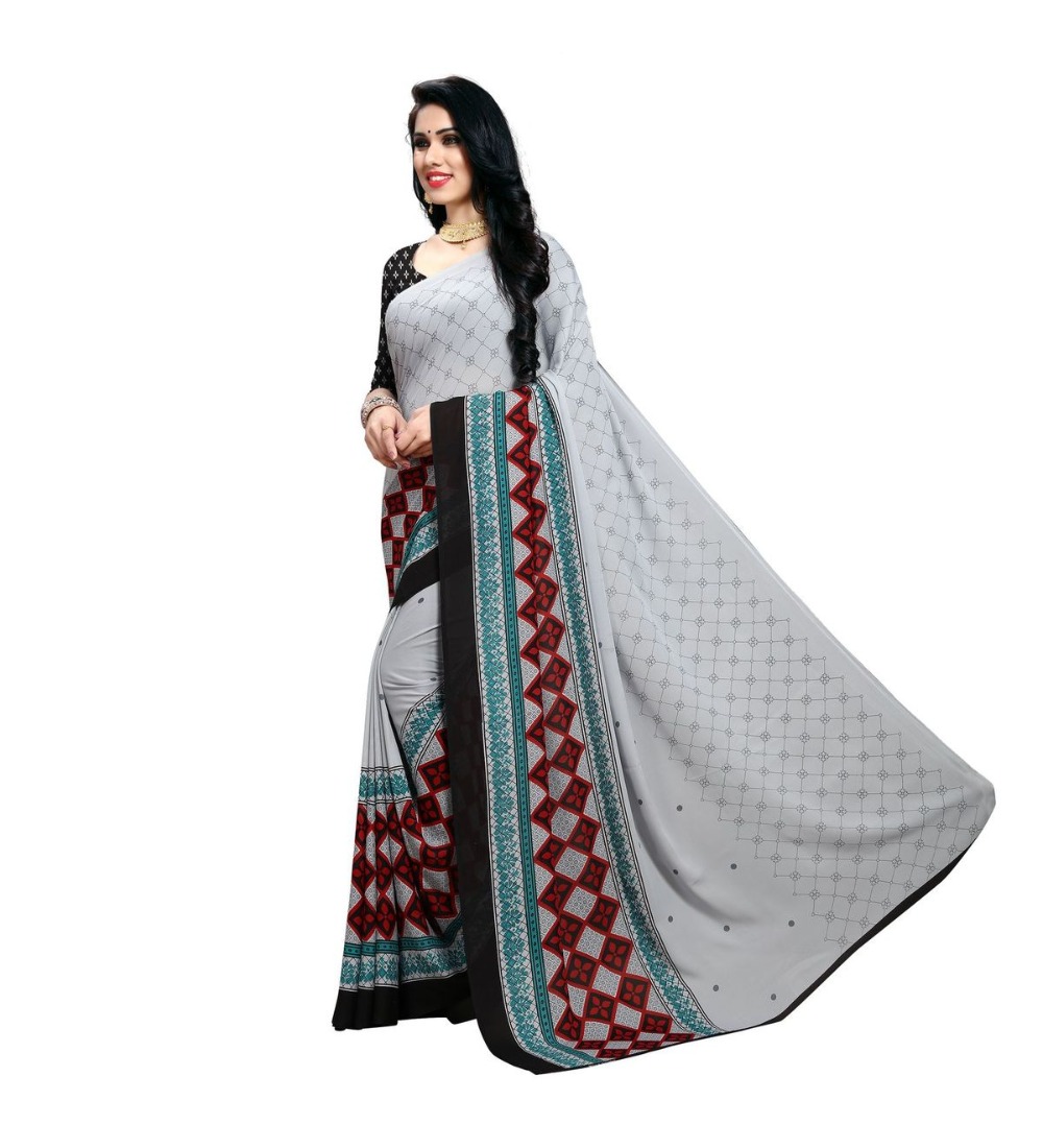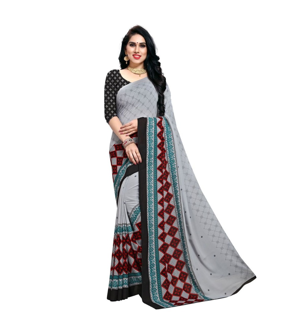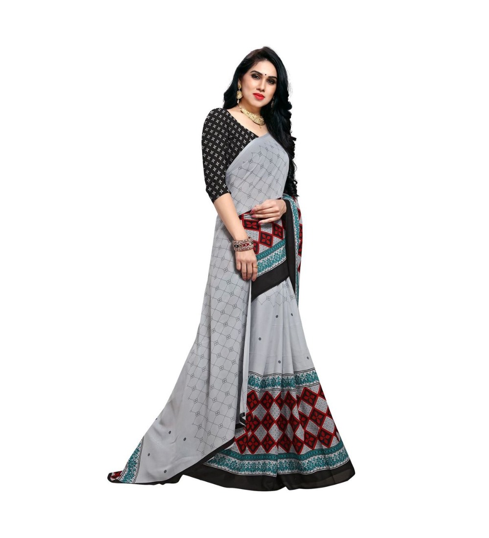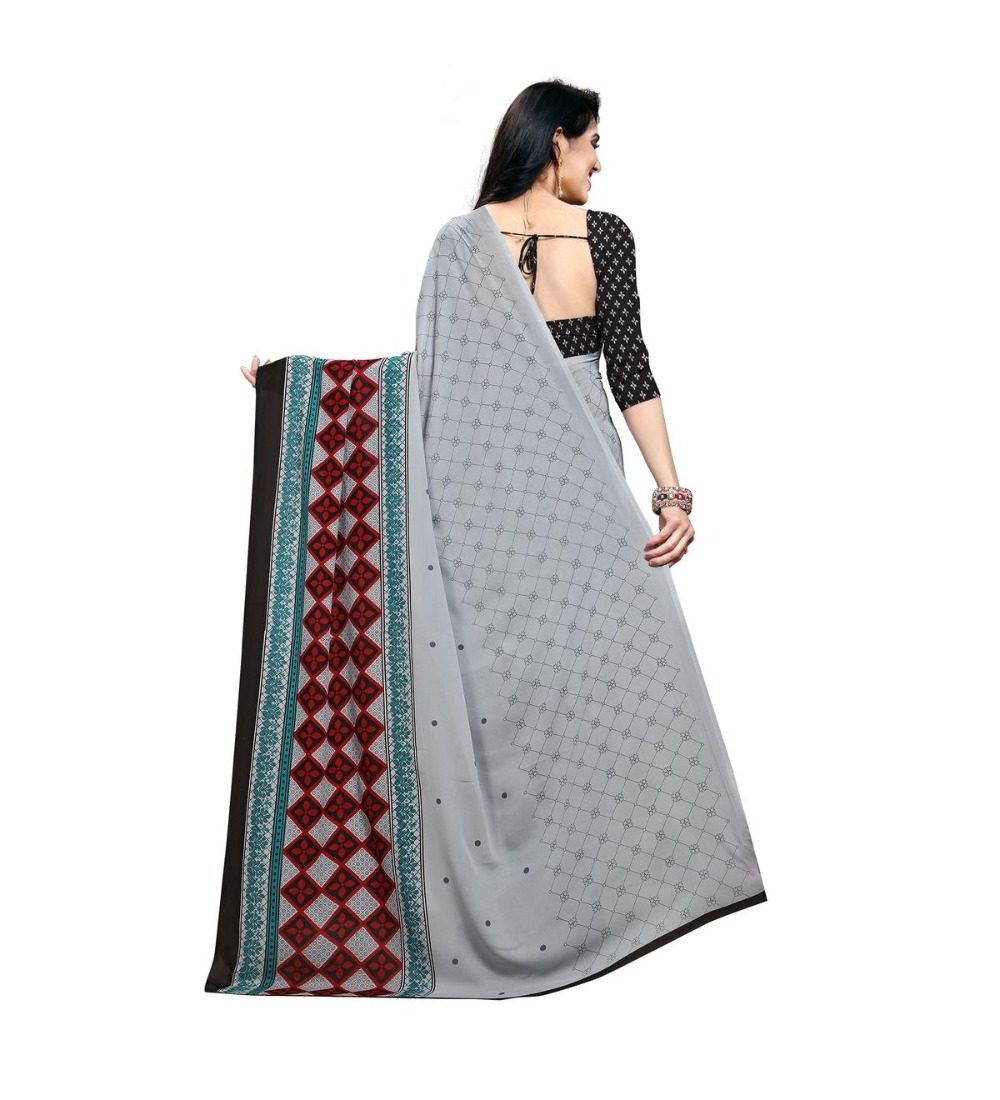 Women’s Georgette Saree(Grey,5-6 Mtrs)