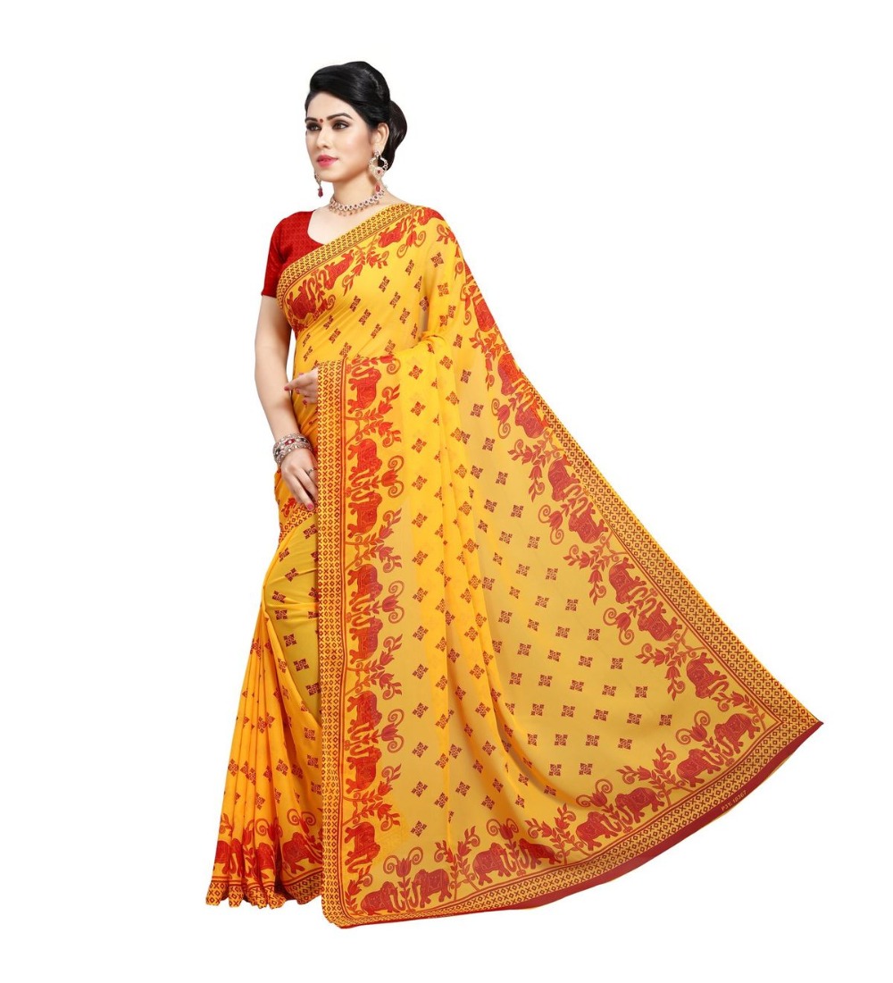 Women’s Georgette Saree(Red,5-6 Mtrs)