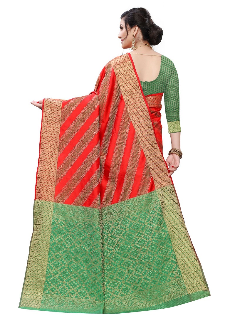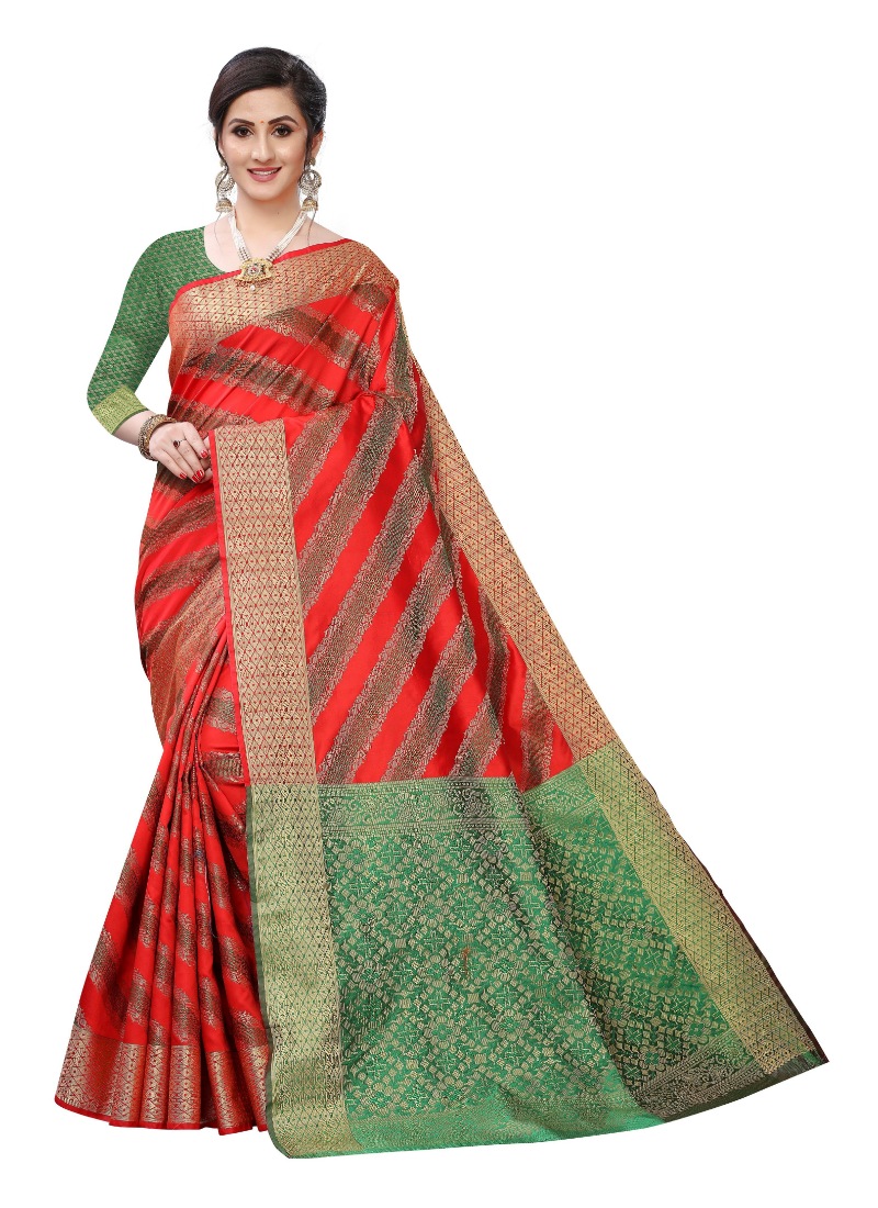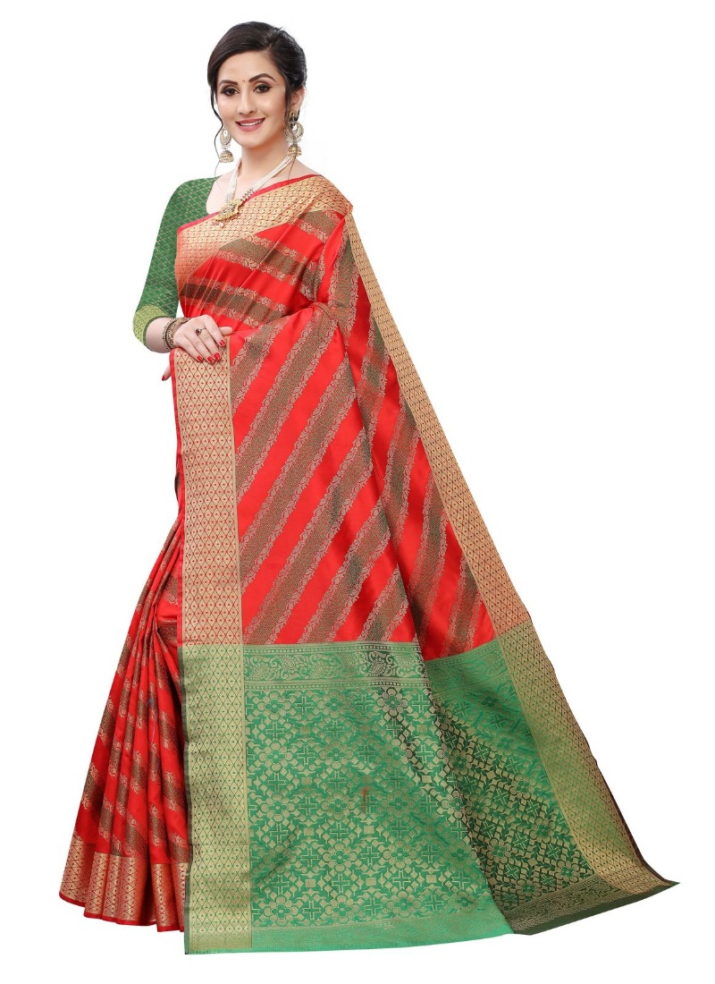 Women’s Jacquard Woven Saree(Red ,5-6Mtrs)