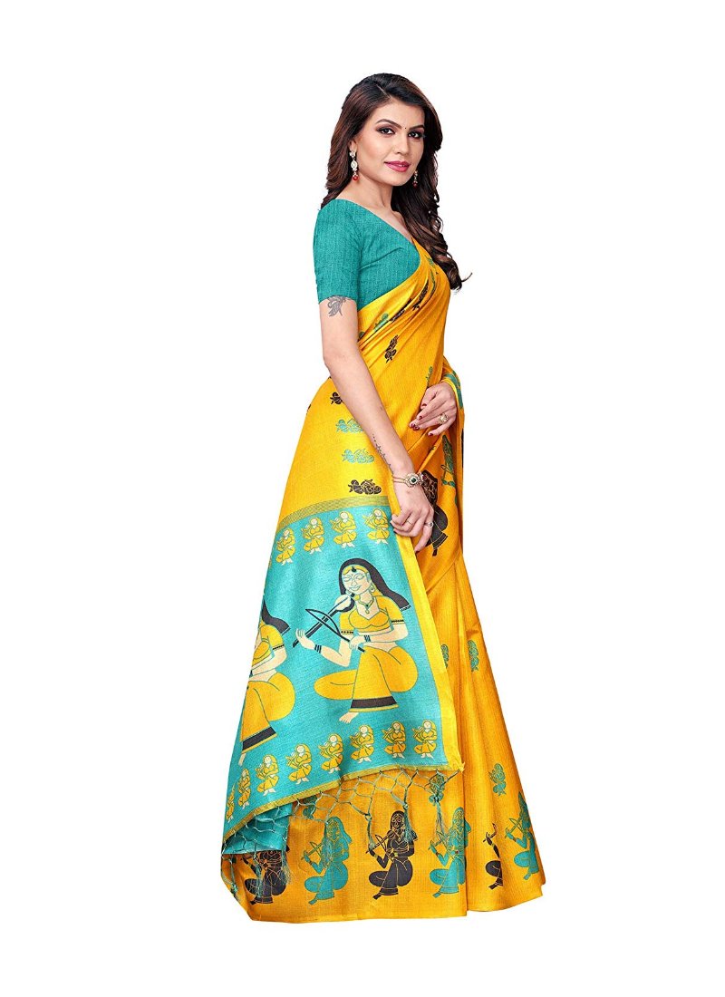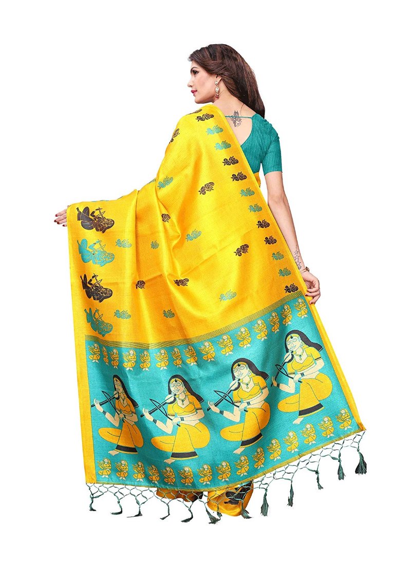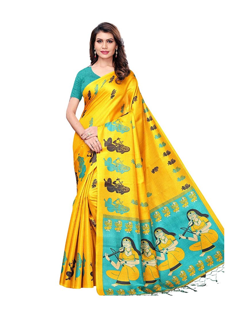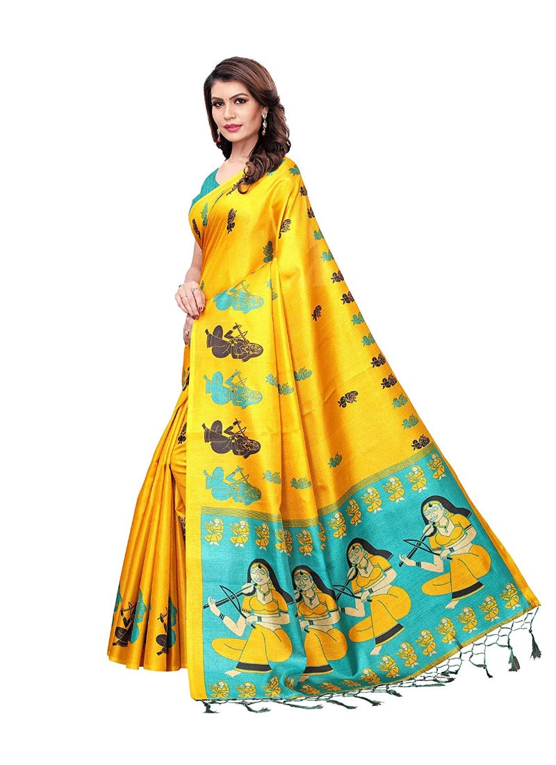 Women’s Khadi Silk Saree With Blouse (Yellow, 5-6mtrs)